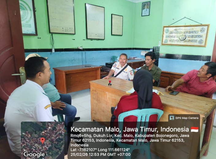 menyampaikan kegiatan hari ini Rabu tanggal 25 Pebruari 2026 jam. 09.00 wib yang bertempat di balai desa Dukohlor dengan agenda kegiatan monitoring bumdes untuk percepatan kepungurusan BUMDES berbadan hukum oleh tim monitoring dari kecamatan malo