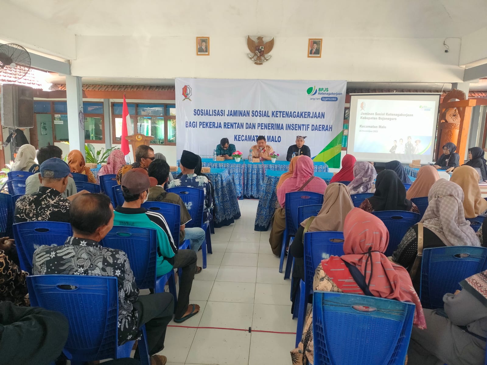 MALO — Sosialisasi manfaat kartu kepesertaan BPJS Ketenagakerjaan digelar di Pendopo Kecamatan Malo pada Kamis, 20 November 2025, mulai pukul 09.00 WIB...