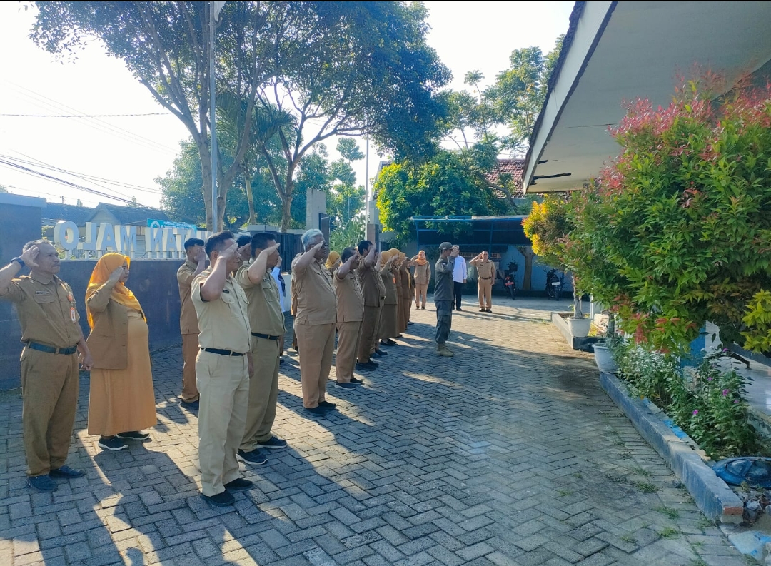 Kegiatan apel pagi yang dilaksanakan oleh karyawan karyawati dan dinas satu atap kantor Kecamatan Malo ...