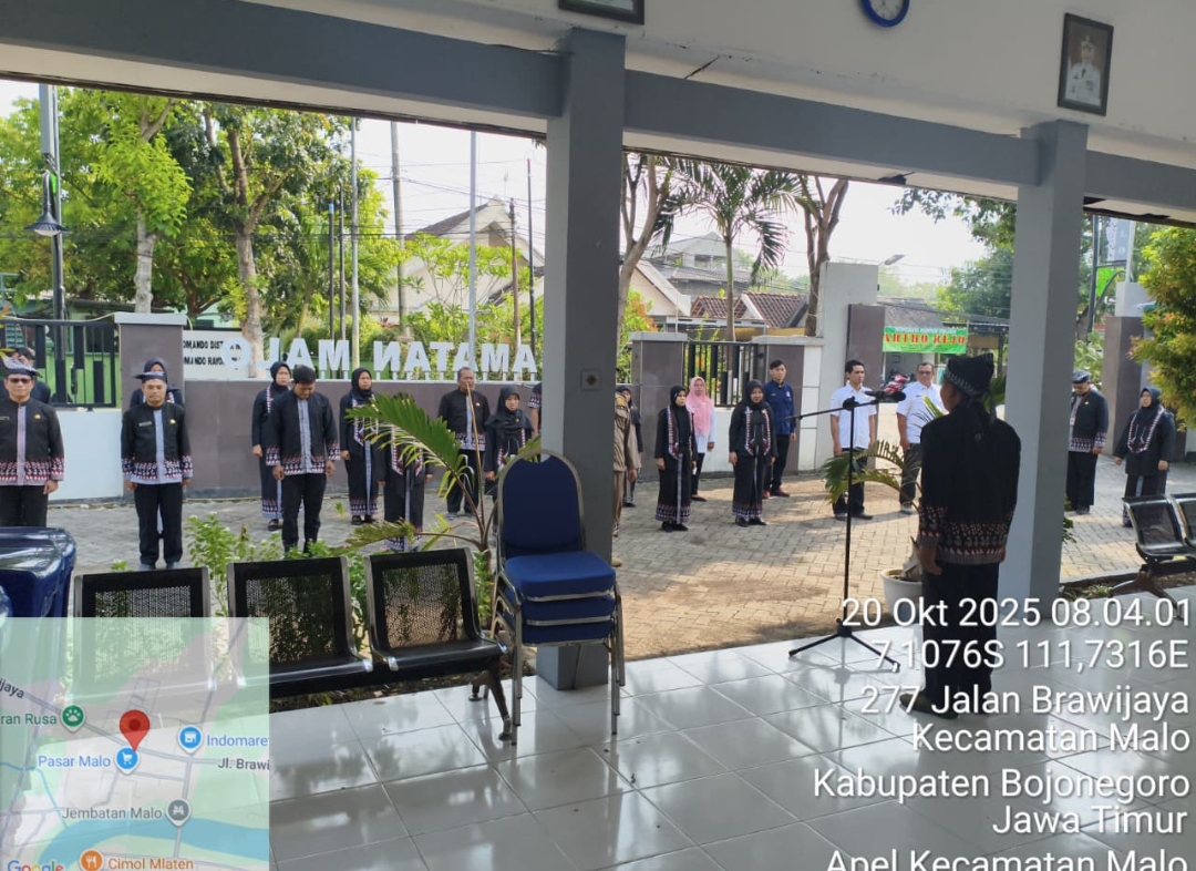 Apel pagi yang dilaksanakan tiap hari Senin yang di ikuti oleh karyawan karyawati dan dinas satu atap kantor Kecamatan Malo ...
