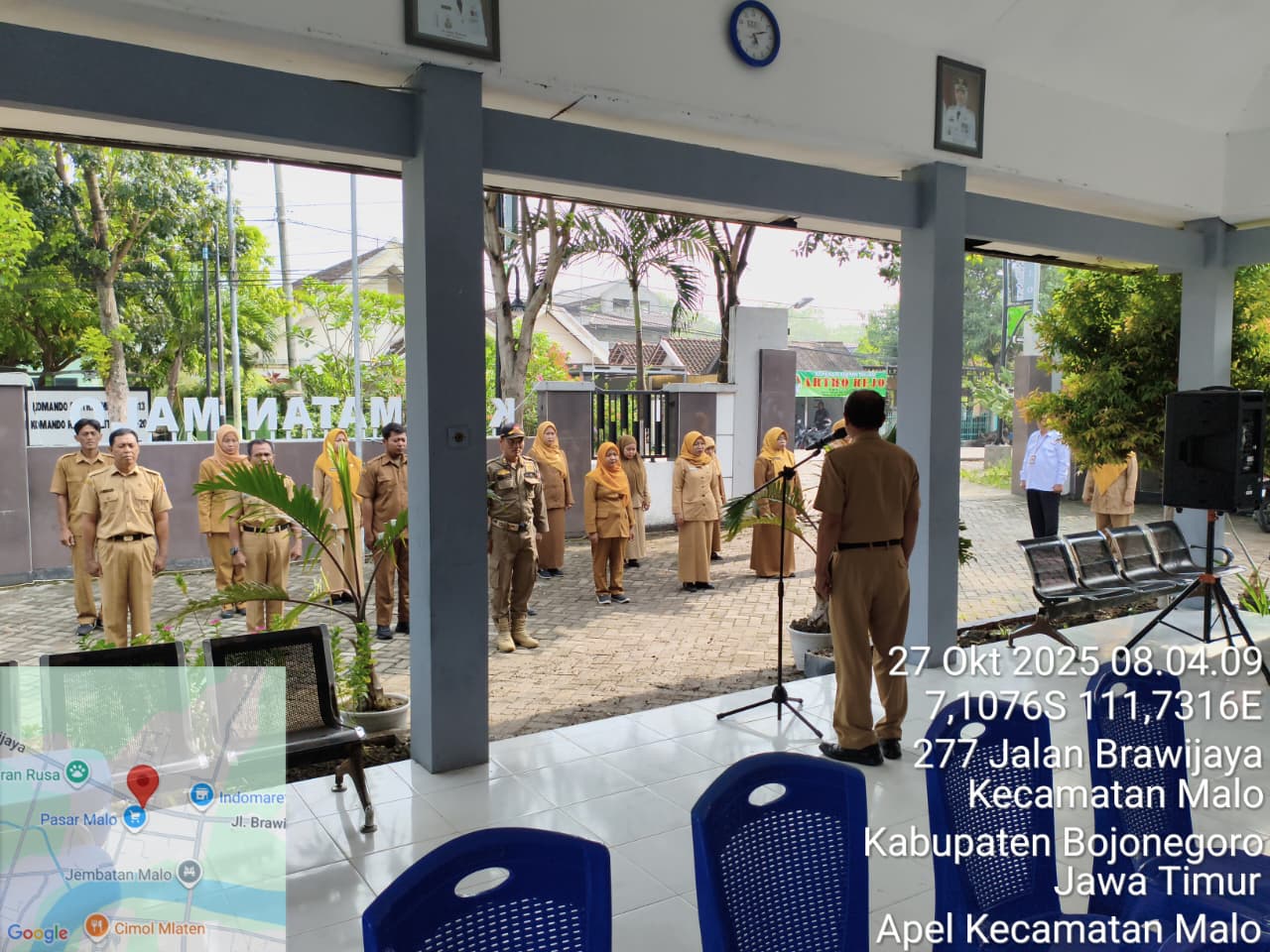 MALO – Kecamatan Malo kembali melaksanakan apel pagi rutin setiap hari Senin yang digelar di halaman kantor kecamatan pada 27 Oktober 2025...